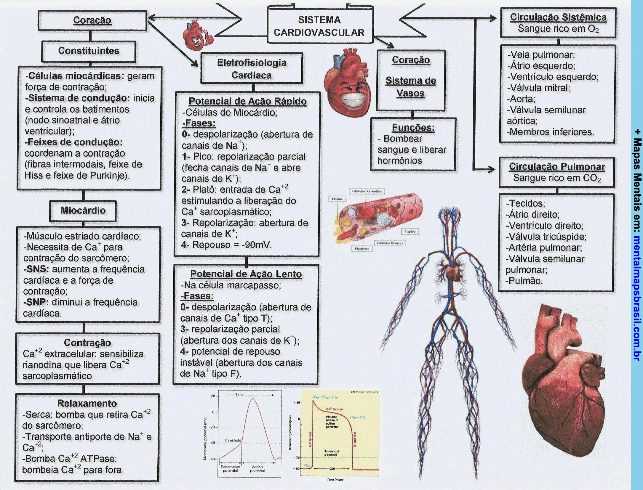 Mapa Mental sobre Sistema Cardiovascular com Funções e Potenciais de Ação