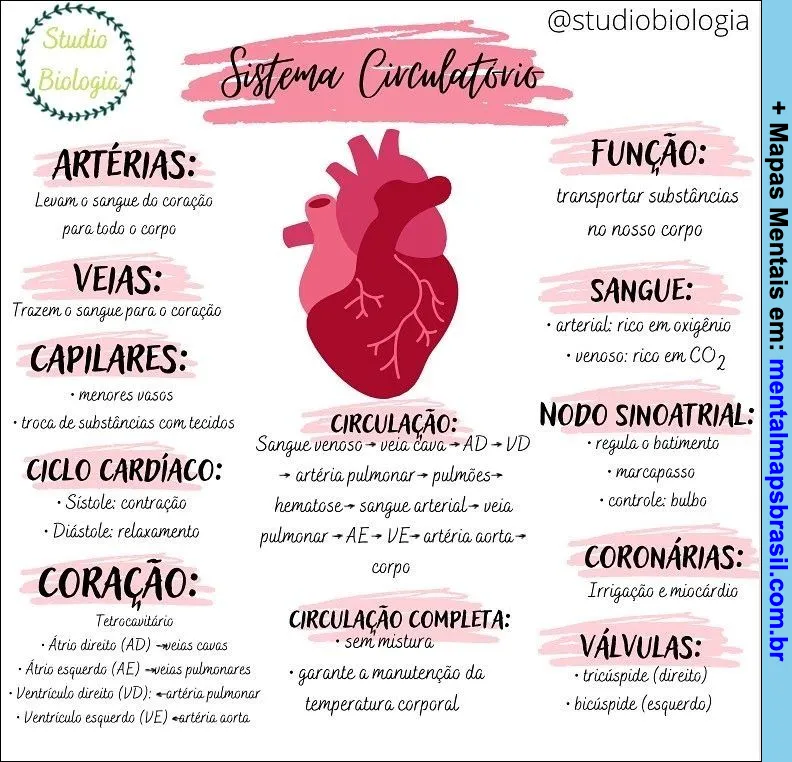 Transcrição do Mapa Mental sobre Sistema Circulatório