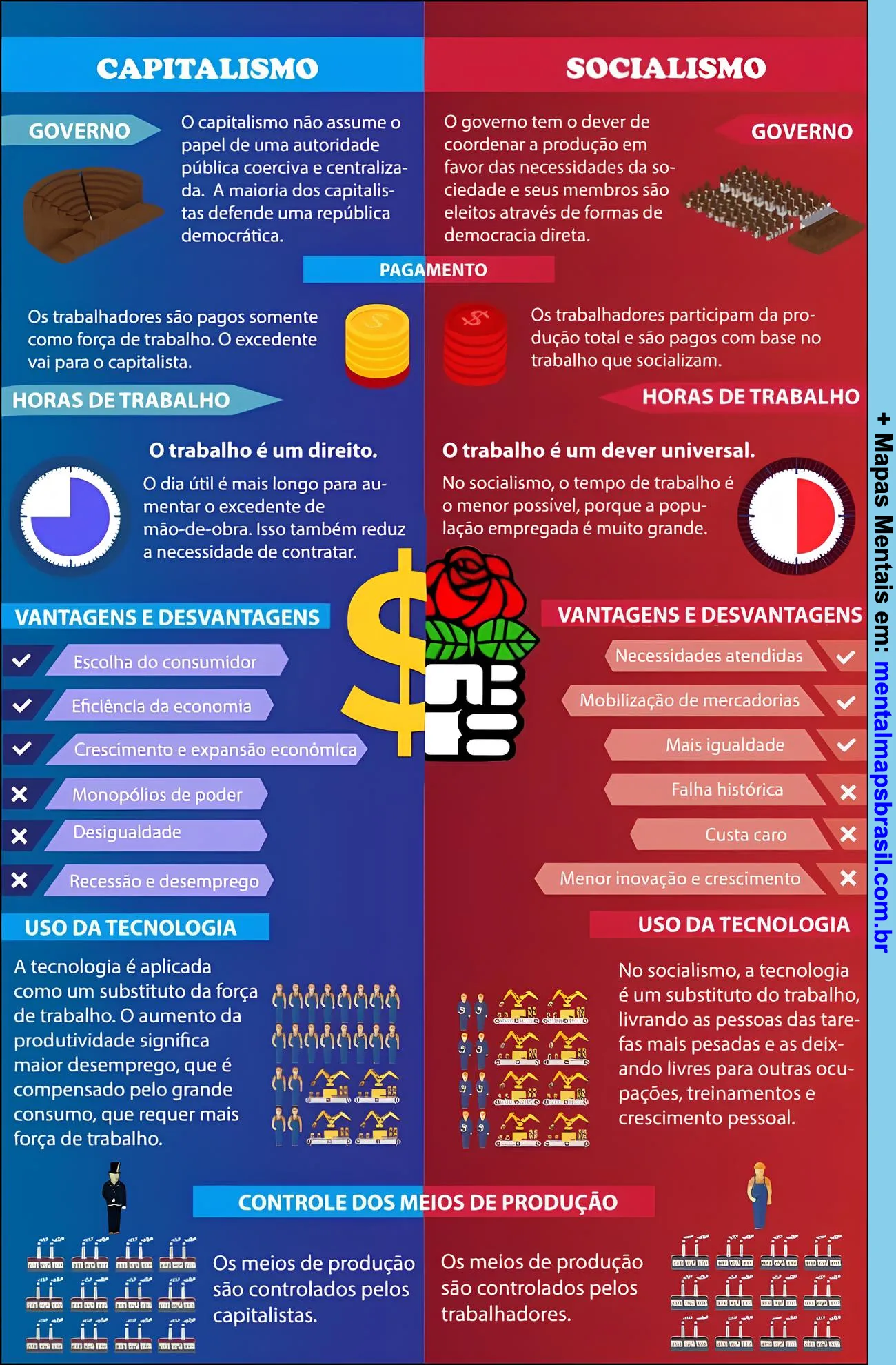 Mapa Mental sobre Capitalismo e Socialismo: Principais Diferenças