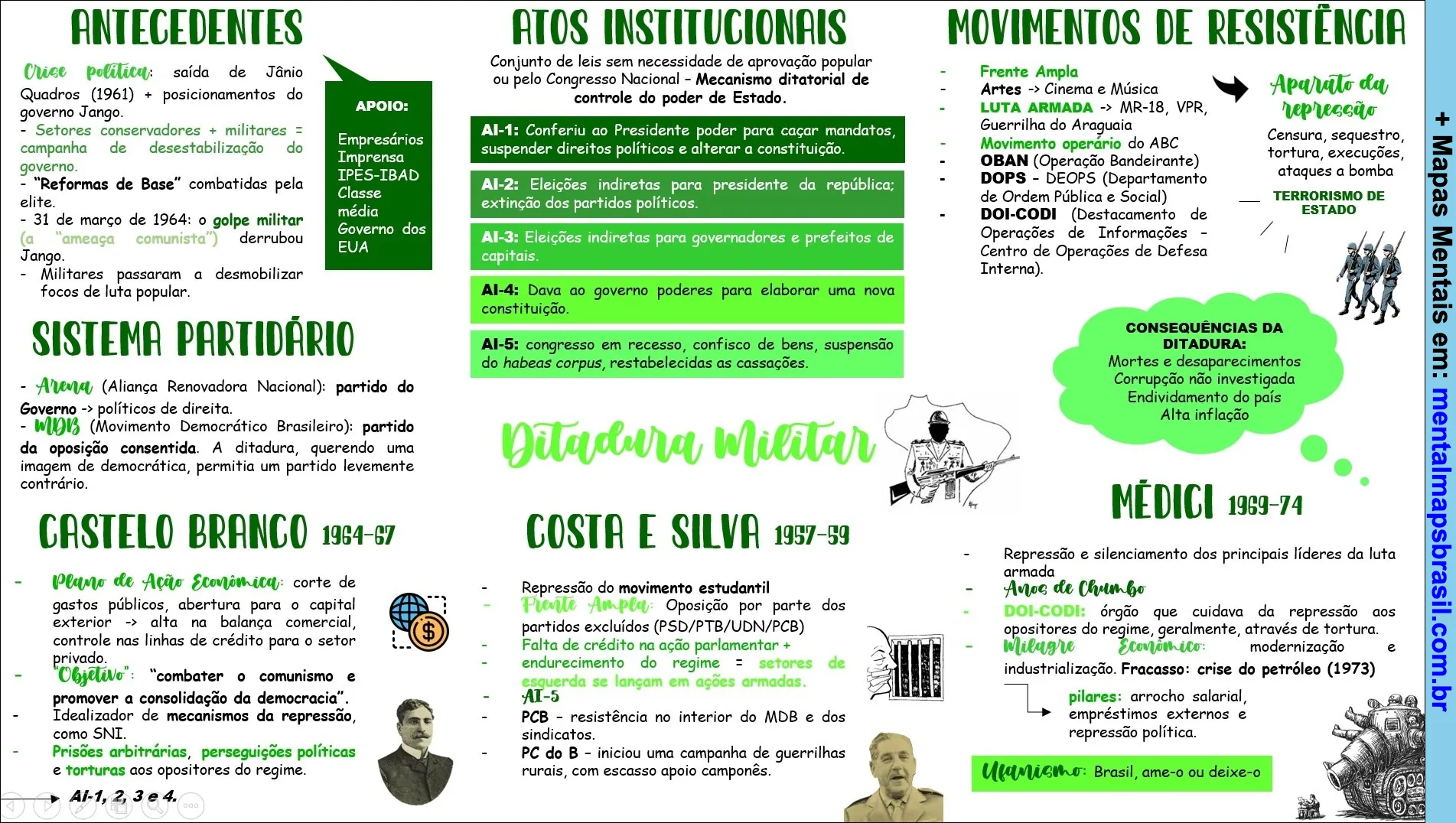 Transcrição do Mapa Mental sobre Ditadura Militar