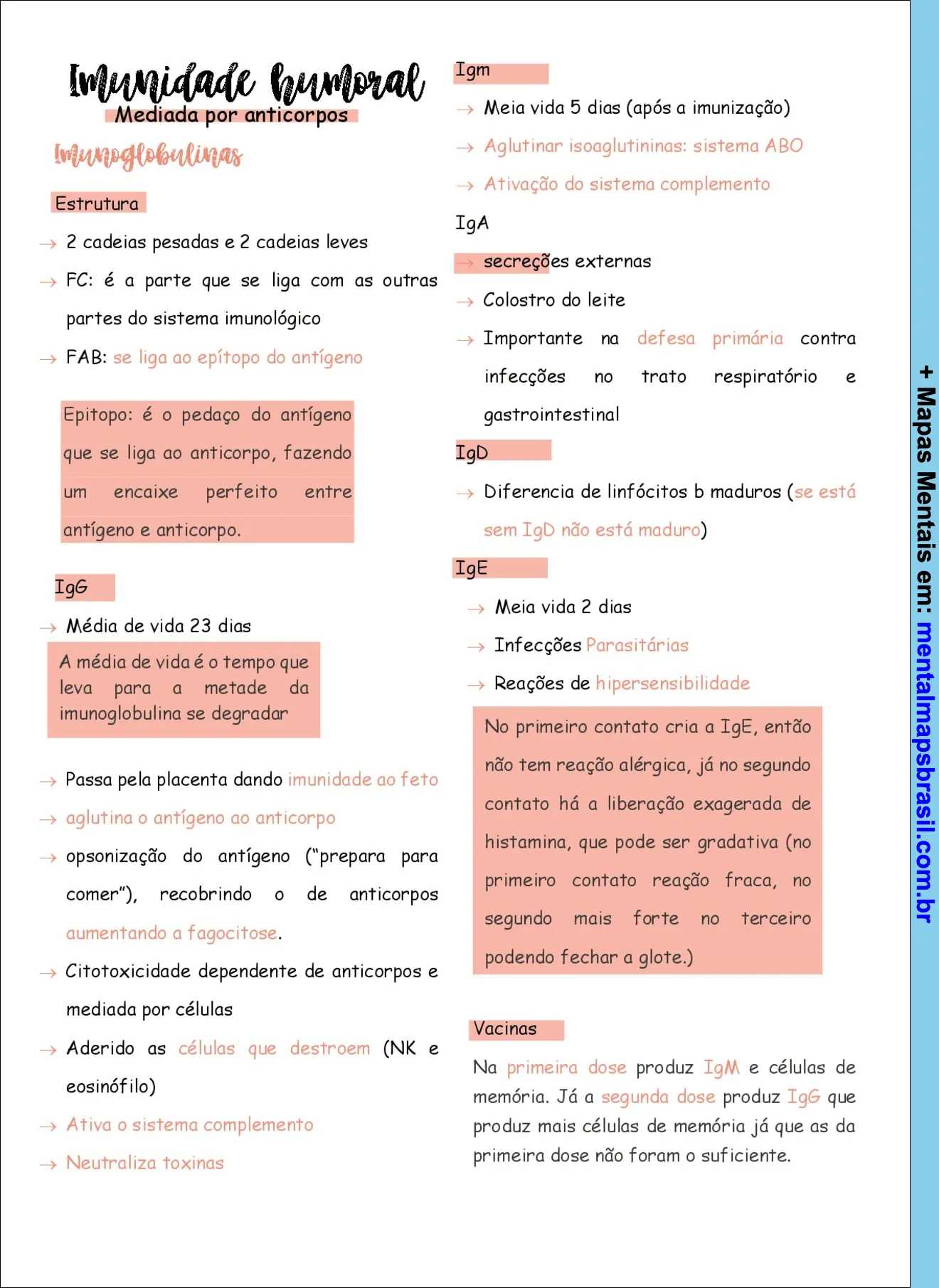 Transcrição do Mapa Mental sobre Imunoglobulinas