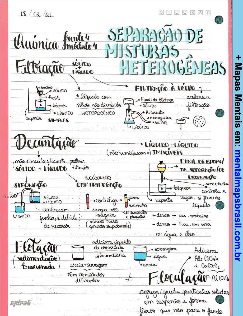 Transcrição do Mapa Mental sobre SEPARAÇÃO DE MISTURAS HETEROGÊNEAS