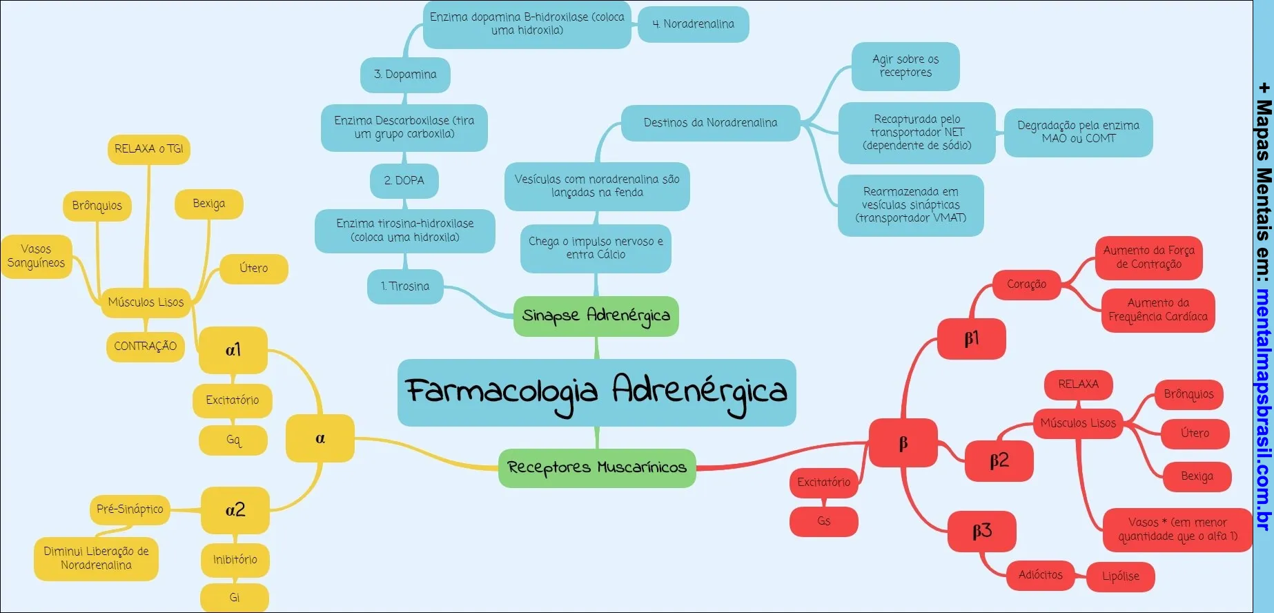 Transcrição do Mapa Mental sobre Farmacologia Adrenérgica