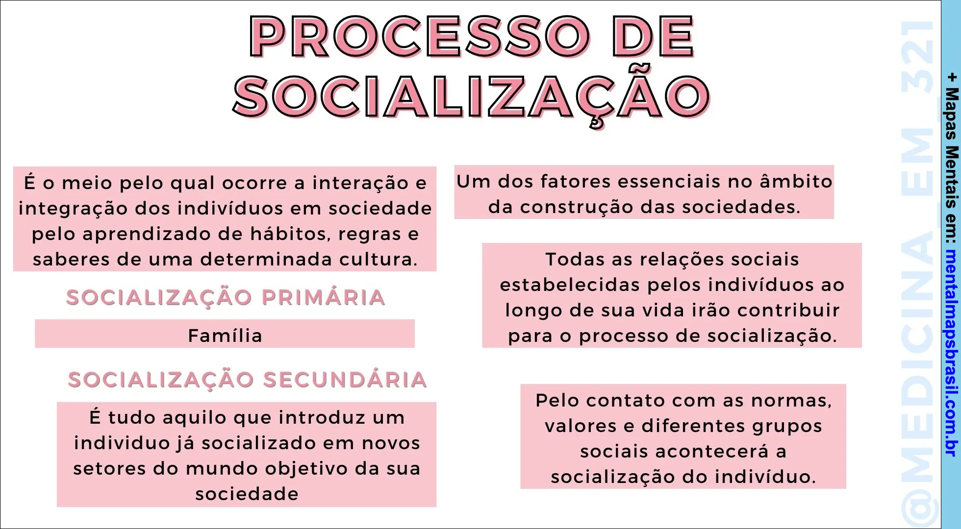 Transcrição do Mapa Mental sobre PROCESSO DE SOCIALIZAÇÃO